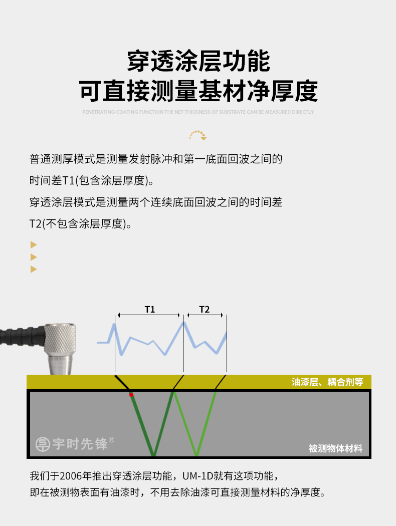 超聲波測(cè)厚儀穿過(guò)涂層測(cè)厚度的原理: