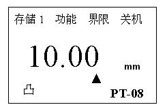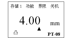 說明:當探頭與被測材料耦合時,屏幕上將顯示“凸”標志;當耦合標志閃爍或不出現則說明沒耦合好。拿開探頭后,厚度值保持不變,耦合標志消失。見下圖:
