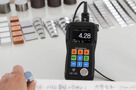 收到需求后我們建議郵寄樣品過來實測下,分別用了不同型號的超聲波測厚儀來 測試,最終用我們沈陽宇時先鋒生產的UM-5系列測厚儀配合低頻探頭測試成功了,測量效果很穩定,而且測試出來的數值也正確,客戶對測試結果很滿意,當時就下訂單購買了。