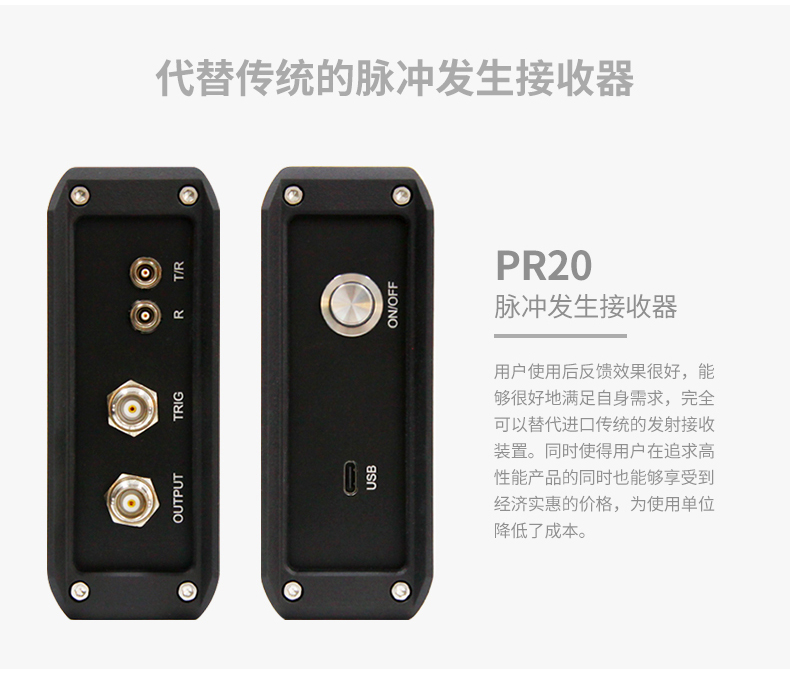 產品介紹: PR20包含一個基于Windows平臺的控制程序軟件,可以選擇觸發源、發射電壓、重復頻率和脈沖寬度,也可以切換接收器的單/雙晶模式,調節阻尼和增益,滿足用戶不同的使用需求。用戶還可以在各種主流的Windows系統下使用開放的SDK軟件開發包自主開發應用軟件。
