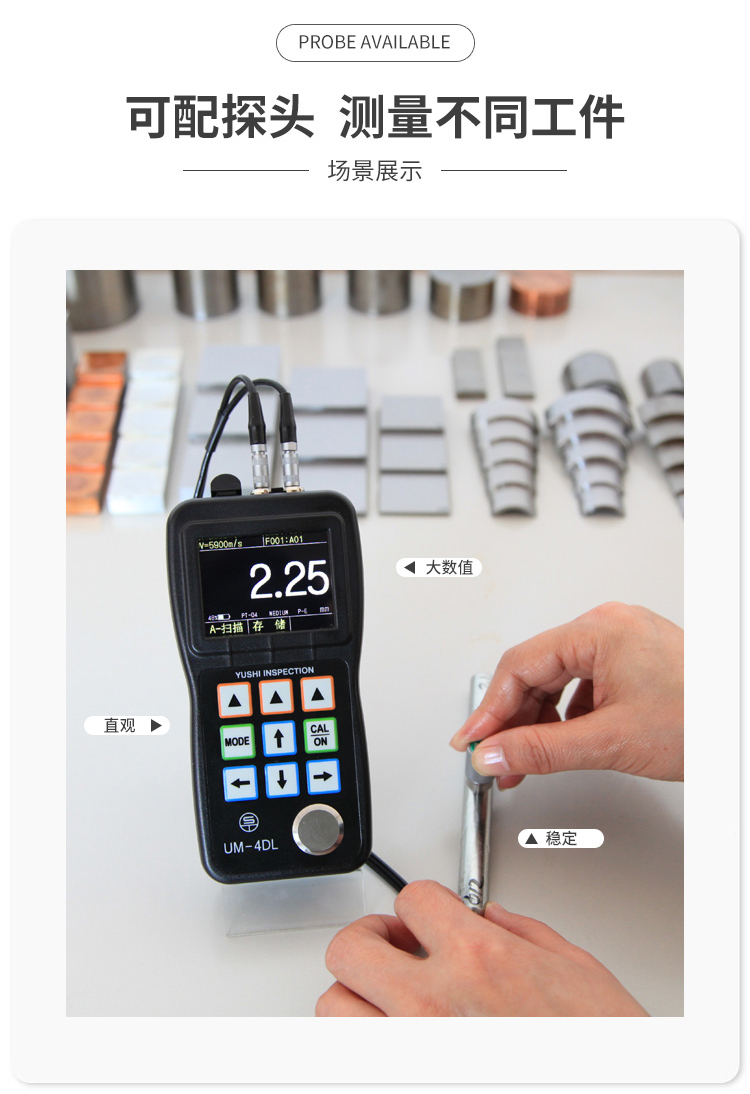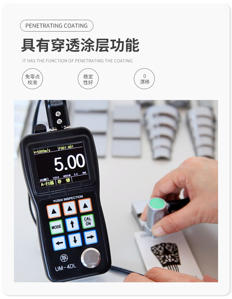 2、高穩定性,測量值不受探頭壓力、耦合層厚度和工件表面灰塵污漬的影響;