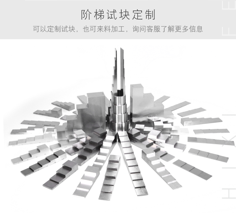 應用范圍:測厚試塊執行GB/T 11344-2008無損檢測接觸式超聲脈沖回波測厚方法。試塊材質有:碳鋼、不銹鋼、銅、鋁等。規格有:階梯方形、階梯半圓形、階梯扇形等。厚度單位:毫米、英寸。同時還有多種外形美觀的試塊包裝盒供您選擇。如有其他規格需求可定制!