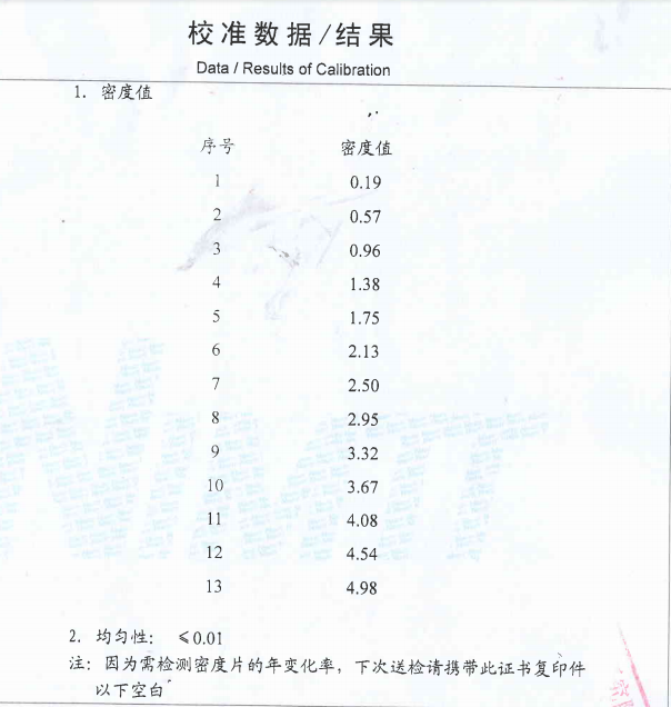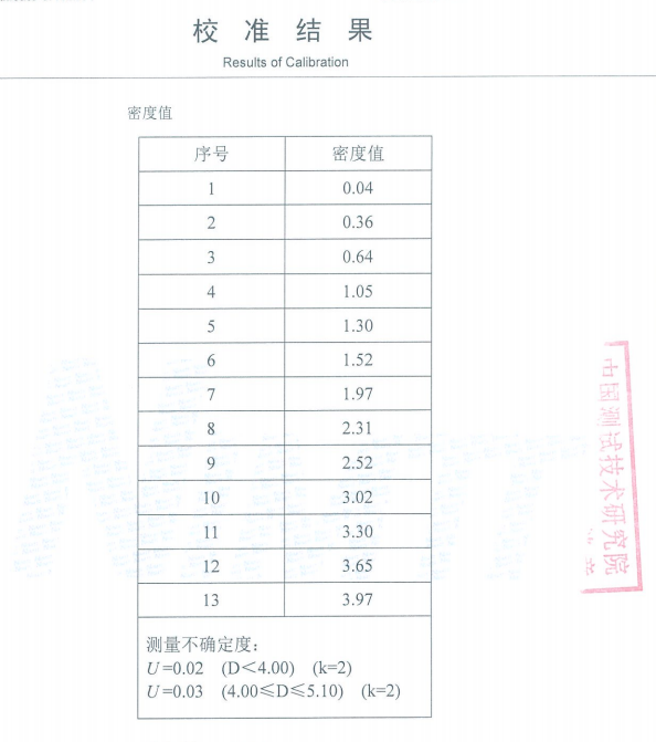 DV-13密度片密度值參考如下: 每個密度片的實際值略有差異哦,以實際送檢計量值為準!