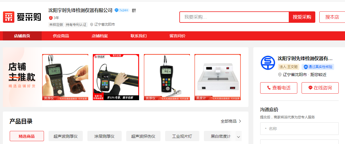百度愛采購店鋪名稱為:“沈陽宇時先鋒檢測儀器有限公司”,是我們公司在百度注冊的唯一官方店鋪,如有問題請咨詢客服:15734068833